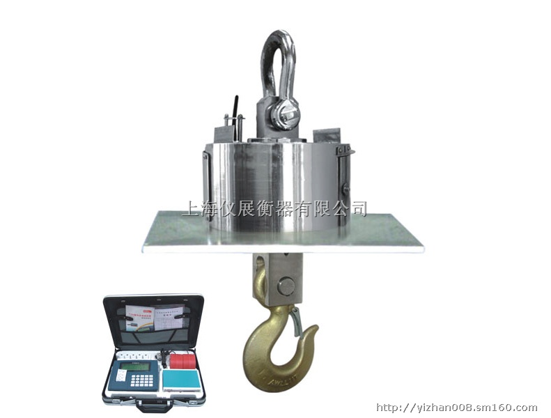 将电子吊秤的吊环挂在起重机的吊钩上,当电子吊秤的吊钩上挂上物品后,在秤体内的传感器受到拉力产生变形,传感器内的电流发生变化,然后这个变化的电流通过A/D转换,再通过发射机将无线电信号发出,根据国家无线电管理委员会的规定,电子吊秤一般是用230MHZ和450MHZ发出的,接收机接收到信号以后传输给仪表,然后经过仪表的转换计算,最终显示出来。