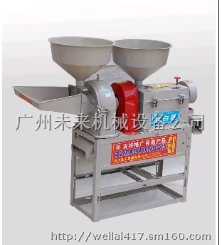本机器主要是由米机、粉碎机、电机、机架等四大部分组成,米机主要由机盖、中座、机座、米辊、米筛、米刀、进料斗、溜筛、皮带轮、调节装置组成。粉碎机主要由进料斗、粉碎机壳体、出料斗等组成。