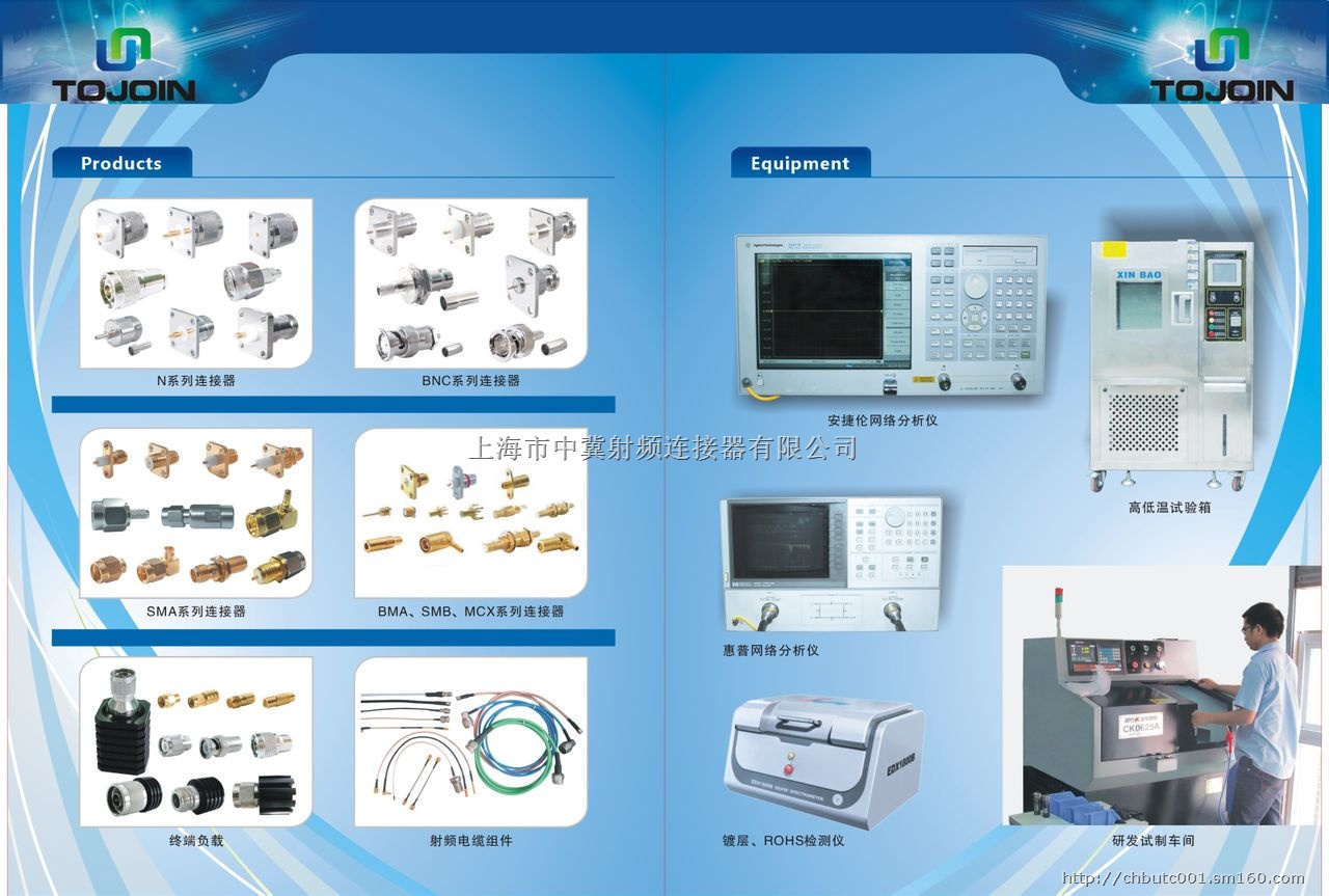 我司致力于射频同轴连接器的研发、制造以及服务,系列包括:N、SMA、SSMA、SMB、SSMB、BMA、MCX、BNC、TNC、2.92系列及各种射频同轴电缆组件