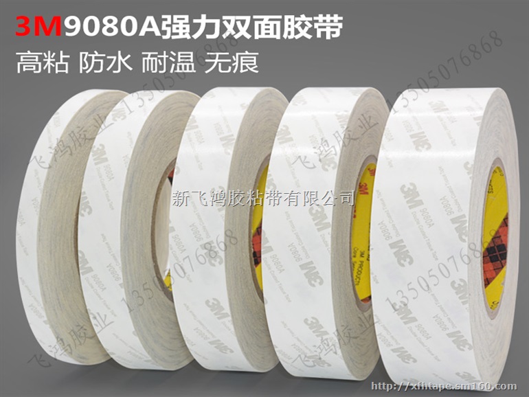 3M9080是3M双面胶中一种,属于无纺布基材双面胶,由无纺布双面涂布丙希酸胶制成,颜色为白色半透明;是一款易于操作,通用的型的双面胶,具有耐久性,耐温性好,短期耐温性120℃,长期耐温性90℃;防水性,回弹性好,粘力强。 3M9080规格为:1200MM*50M。