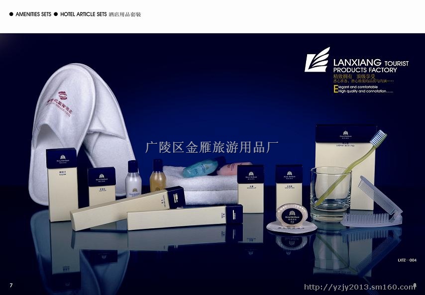 扬州市金雁旅游用品厂位于“中国酒店日用品之都”、“中国牙刷之都”---杭集,是一家严格按照”中华人民共和国旅游行业标准《星级饭店客房用品质量于配备要求》生产宾馆酒店客房一次性用品的专业制造企业。我们的产品涵盖了:香皂、拖鞋、牙具、梳子、洗发液、沐浴液、润肤露、擦鞋布、擦鞋器、洗衣袋、茶叶、鞋拔、棉签、指甲锉等一次性旅游、宾馆酒店客房系列,并承接国内外OEM订单。本企业在酒店用品行业已经成熟经营了二十余年,积累了大批长期合作伙伴:如绿地豪生、雷迪森、皇冠假日等高星级酒店;如家、格林豪泰、汉庭等经济型连锁酒店;国内大量的私有宾馆以及亚洲、欧洲、美洲等国外客户。