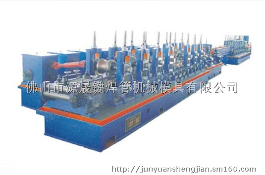 本机组在原同类焊管机组的基础上,吸收国内外技术之长,对平辊、焊接、矫直、锯切等关键部位的选材、制造、工艺、进行更新、成型、焊接、冷却、定径、矫直为同两平台组装。选用国内品牌乃至进口的外购配件套,配置电脑定尺切割飞锯,使本机组显示出设计先进合理,焊接平稳牢固,制管精密精良,换模操作便捷的优点。