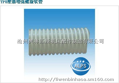 TPU塑筋增强螺旋软管用途:适用于工矿、农业和水利、土木工程、食品、石油、化工、卫生等行业的真空抽吸粉末、颗粒,输送水、油、化工材料、食品等,在农田灌溉、工矿、油库、抽砂、喷砂、食品、医药及室内的气体、粉末、灰尘吸收排放等领域有着广泛的用途。该产品是PVC、橡胶、金属管材的最佳替代产品。