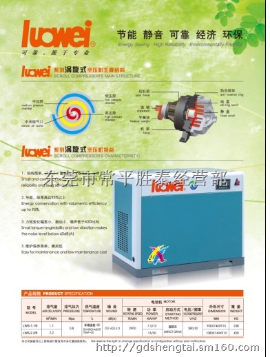 罗威涡旋式静音节能空压机,主机是由先进技术的生产设备所制造,能将制造过程中的误差控制在微米之间,确保它的使用可靠性,并延长使用寿命;
