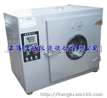 干燥箱由薄钢板构成,工作室与箱体外壳间以玻璃纤维作保温层材料。箱门中间有一玻璃窗,以供观察工作室内之情况。开启箱顶排气阀可使工作室温之冷热空气得以对流交换,温度控制用热胀式控制器或数字显示仪表自动恒温调节。全部电器操作设备均装于箱侧控制层内。控制层内有侧门可以卸下,以备检查或修理线路时用。电热器装于箱体内工作室下,共分二组,即“加热1”“加热2”,并有指示灯指示加热工作,灯亮表示电热器工作,灯灭表示加热停止。