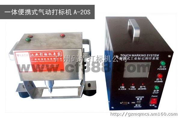 台式气动打标机:这种设备的原理是电脑控制气针打标记,特点是即时输出、有较大深度,因此特别适合打各种批号等需要经常变动的标识。这种设备最早由2家法国公司引入国内,但由于价格和售后服务的问题,目前还是由国产品牌占主导地位;打标机其实要求生产商具有非常专业的数控设计力量,而一些生产商由于急功近利,采用了根本未经充分检验论证的数控系统,因此目前国产打标机产品质量问题比较突出,一旦售后服务跟不上(这种设备重量体积都较大),经常使客户叫苦不迭。码清自行研发的A系列打标机,采用最先进的数控系统,关键部件坚持采用了成本较高的进口配件,产品成功地应用于许多国内著名汽车生产流水线上,经受了最严苛的考验。