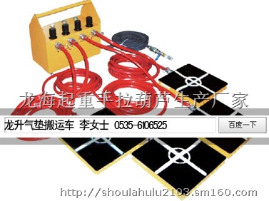 烟台龙海起重工具公司是专业的气垫搬运车生产厂家,生产的气垫搬运装置规格10吨~48吨,标准配备:空气控制器、气垫模块、主副气管等,对于气垫模块数量、主副气管根数、长度可定制生产。