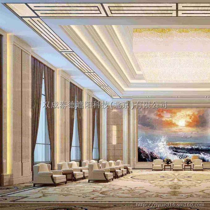 产品说明:电动布帘即能电动操作,也可手动操作,使用简单、样式大气,灵滑噪音小,为您创造舒适,温馨的环境。多用于高级会所、酒店、别墅