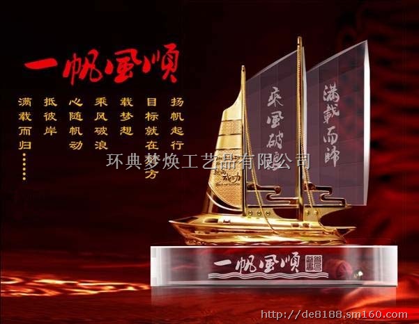 公司生产的帆船造型奖杯款式新颖,质量保证,价格合理。可以根据用户要求设计出各种款式的帆船造型奖杯,包括内雕文字logo及图片,喷砂刻字,彩印等。产品全部采用礼品盒包装,适用于各个公司企业,机关单位颁奖所用。