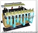 一、用途 本系列频敏变阻器(以下简称变阻器)适用于容量自1.5到200千瓦,交流50赫芝YZR系列起重冶金用三相异步频繁操作情况下的起动及反接设备。该异步电动机的转子回路中接入变阻器,一般采用常接方式,不需另装接触器等短接设备。二、型号意义频敏变阻器的工作条件:依据操作的频繁程度不同,可分为三类:第一类:稍频繁,每小时100-400次,机械车间的桥式吊车上除主钩外,平移机构上的电机,出炉辊道,拉钢机等,大多数刚起动就断电。第二类:较频繁,每小时400-600次。冶金轧钢车间桥式吊车,除主钩外,平移机钩上的电机,轧机前后工作辊道,延伸辊道等,大多数刚起动就断电。第三类:频繁操作,每小时600-1000次,升降后,升降台辊道,压下装置,拔钢机,轧机中辊。三、结构及安装尺寸 变阻器实质上是一种无触点电磁元件,相当于一个等值阻抗,在电动机起动过程中,由于等值阻抗,随转子电流频率减小而自动下降,从而只需一级变阻器就可把电动机平稳的起动起来。 变阻器实质是一个铁芯,损耗特大的三相电抗器。它由数片山形钢板叠合而成,每块钢板之间有气隙垫片的铁芯及线圈两个主要部分组成。铁芯采用了冷冲制成的山字型结构。