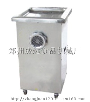 冻肉绞肉机是肉制品生产行业中通用性高使用范围广的一种肉食加工设备。它是依靠螺旋杆将料斗箱中的原料肉推到预切板处,通过螺杆的旋转挤压使用孔板与铰刀产生相对运转,从而将原料肉切成颗粒块状,确保了肉馅的均匀性。通过孔板的不同组合可达到理想要求的不同肉馅。
