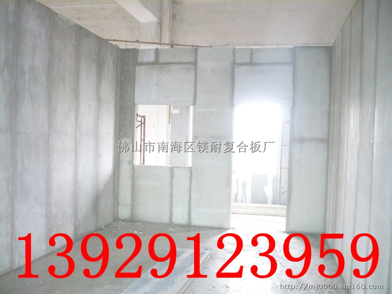 新一代环保建筑墙板革新产品--镁坚轻质防火隔音隔墙板,外层是氯氧镁水泥(绝对不燃,硬度比一般水泥高5倍),内层是隔音超强的聚苯乙烯泡沫板或绝对防火的发泡水泥,因此镁坚轻质隔墙板具有高强度、轻质、防火、抗水(不回潮)、抗震、隔音、隔热、厚度小、免批荡可直接刮塑或油ICI乳胶漆。施工快捷等特点。镁坚轻质墙板采用新型环保材料,不含对人体有害的原材料,无放射性。墙板可钉、可挂、可锯、可粘贴瓷砖等装饰材料,安装方便、施工现场污染小、节约面积等优点。
