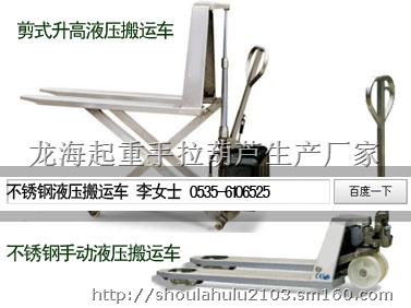 龙海起重工具公司是专业的不锈钢液压搬运车厂家,生产的产品主要包括手动型不锈钢液压搬运车和剪式升高型不锈钢液压搬运车。