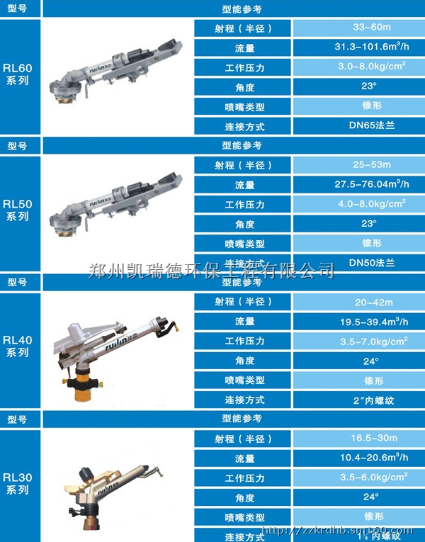 郑州凯瑞德环保工程有限公司开发出了先进的国产钢铁厂专用喷淋喷枪,满足各类用户的需求。用户可根据流量、射程、工作压力、喷洒仰角等参数选择相应型号。