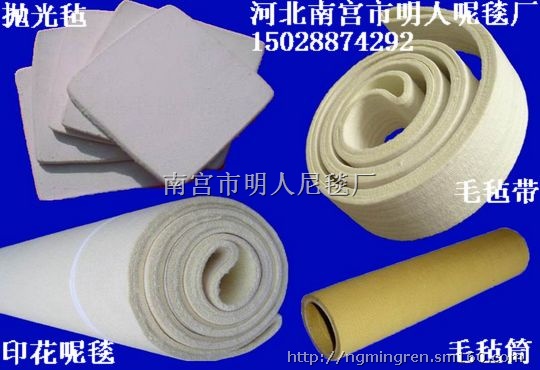 主要产品有: 1、高温毛毡带、传送带,耐温200-600℃-1200℃;钢铁生产传送带、铝材加工传送带、热转移印花毛毯、耐高温输送带、轧褶机套毯、烫平机套毯、导带、熨烫毡垫、高温毡垫。 2、中常温毛毯带,耐温200℃以下;