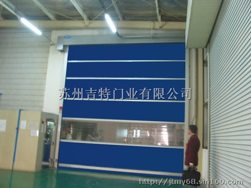 快速门又称为快速卷门、高速门、高速卷门,是通过PLC、变频器、编码器控制(PVC材质)门帘快速升降,并准确定位的一种工业门,多用于食品、电子、印刷等对环境要求较高的场所,主要作用是起快速隔离的作用从而保证车间空气质量无尘等级。