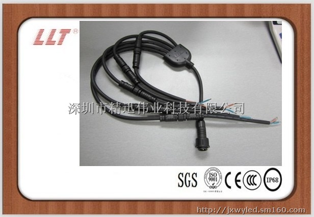 Y型防水插头线材料有PVC/尼龙两种,根据环境的要求选择不同,一般而言,室内使用普遍选择PVC注塑,搭配PVC国标线材,室外使用尼龙注塑搭配橡胶国标线材,这一款式在LED路灯行业运用十分广泛,主要是方便快捷,一条主线搭配数根支线,达到控制作用。Y型有意拖二、一拖三、一拖四、一拖五、一拖六。。而支线数量越多,则代表难度越高,我司在Y型防水插头线这一块研究多年,技术成熟,做到Y型一拖六已经不是问题,其中运用在四川六盘水工程的路灯亮化中,效果特别显著!