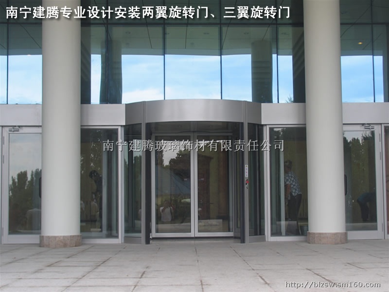 旋转门集各种门体优点于一身,其宽敞明亮和高格调的设计营造出奢华的气氛,堪称建筑物的点睛之笔。旋转门增强了抗风性,减少了空调能源消耗,是隔离气流和节能的最佳选择。旋转门最适合饭店、机场、大型商场、医院、商户会馆、酒店、办公楼、大型大厦等的出入口系统。旋转门按功能可分为手动和自动两种,按类型可分为两翼旋转门、三翼旋转门、四翼旋转门、环柱旋转门以及水晶旋转门。南宁建腾专业安装旋转门,自动旋转门,酒店旋转门。