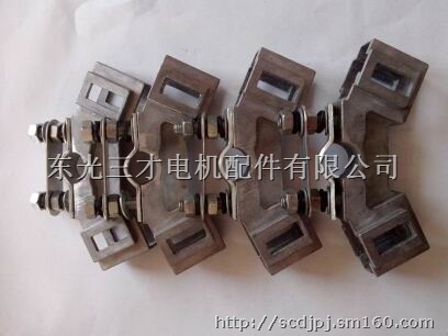 电刷架的作用是通过弹簧将压力加在与换向器或集电环表面滑动接触的碳刷上,使其在固定体与旋转体之间稳定地传导电流。一般交流电机不用恒磁场,所以用不着换向器,也就无须电刷;但交流电机的体积一般都比较大。电刷装入刷架后,应以电刷能够上下自由移动为宜,只有这样,才能确保碳刷在弹簧的压力下随着不断的磨损,而与整流子或集电环持续保持紧密接触.因此,碳刷的四个侧面与刷架内壁之间必须留有一定的间隙.实践证明,这个间隙一般在0.1~0.3毫米之间.既不宜过大,也不宜过小.间隙过小,可能造成碳刷卡在刷架中,弹簧无法压紧碳刷,电机工作失去意义;间隙过大,碳刷则会在架内产生摆动,不仅出现噪音,更重要的是出现火花,对整流子或集电环产生破坏性影响.