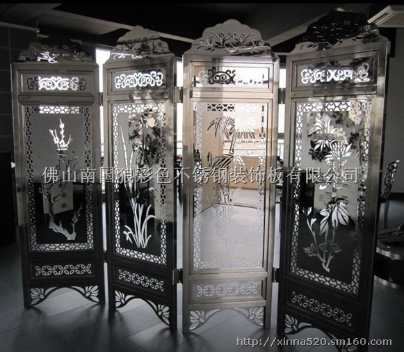南国狼供应不锈钢屏风,不锈钢时尚屏风,不锈钢仿古屏风,不锈钢落地屏风等系列不锈钢屏风,不锈钢屏风生产厂家,不锈钢屏风供应商,不锈钢屏风设计,不锈钢屏风订做等。另外,还有不锈钢酒柜/酒架,不锈钢门套,不锈钢门/门花,不锈钢踢脚线,不锈钢装饰板,彩色不锈钢电梯轿厢,不锈钢雕塑/荷花荷叶/花盆/花盆表面加工,不锈钢压花板,不锈钢防滑板,不锈钢喷砂板等,欢迎惠顾!