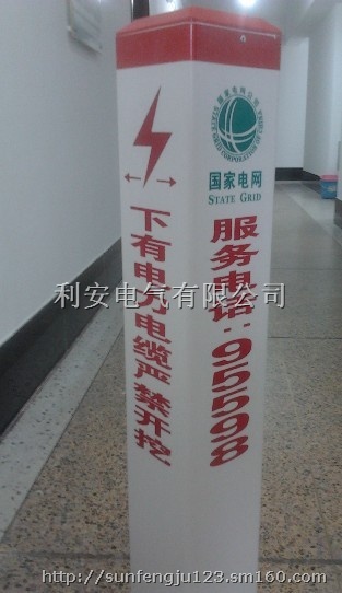 中石油管道警示桩,自来水管道标志桩力电缆警示桩,玻璃钢石油燃气标志桩,PVC地埋警示桩,燃气管道标志桩,玻璃钢电缆警示桩电力地埋标志桩,燃气管道警示桩,玻璃钢电缆警示桩,玻璃钢标志桩,地埋式标志桩,光缆警示桩,塑钢标志桩,光缆标志桩,地埋式路径标志桩,燃气警示桩, PVC路径标志桩,地埋式标志桩,电力标志桩,自来水警示桩,燃气警示桩,电力塑钢标志桩 电信路径警示桩 PVC路径标志桩,地埋式塑钢电力标志桩PVC电信电缆警示桩, 电缆路径标志桩采用高分子复合材料配以高强度玻璃纤维经高温压制而成。具有强度高,重量轻,耐腐蚀,抗冲击,不龟裂,不变色,使用寿命长等特点。产品无二次回收价值,因此具有防盗功能。安装简便,是水泥警示桩的有效换代产品。用途:主要用于电缆线路在绿化带、农田、灌木丛、郊区等设置电缆路径标志块不明显的地方。可单独用于一根电缆的走向标示,也可用于几根电缆并行的电缆通道走向标志。直线段宜每间隔100米设置1座,一般设置在各类电缆井处。直线段较长时,在两座工作井之间加设标志桩。 ,为进一步规范天然气管线标志桩建设,燃气公司从8月中旬开始,加快速度对原有天然气管线标志桩进行整改及对新建天然气管线标志桩进行埋设,一个多月时间,完成了90%的工程量,共埋设了柱状标志桩1087只,人行道上的块状标志桩正在敷设中。 电力塑钢标志桩 电信路径警示桩 PVC路径标志桩,地埋式塑钢电力标志桩PVC电信电缆警示桩, 电缆路径标志桩采用高分子复合材料配以高强度玻璃纤维经高温压制而成。具有强度高,重量轻,耐腐蚀,抗冲击,不龟裂,不变色,使用寿命长等特点。产品无二次回收价值,因此具有防盗功能。安装简便,是水泥警示桩的有效换代产品。用途:主要用于电缆线路在绿化带、农田、灌木丛、郊区等设置电缆路径标志块不明显的地方。可单独用于一根电缆的走向标示,也可用于几根电缆并行的电缆通道走向标志。