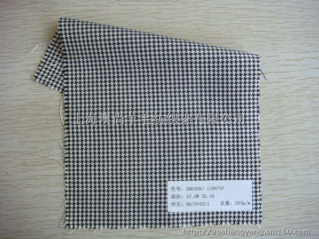 上海澳尚羊毛纺织品有限公司.是一家生产与销售一体毛纺织企业、公司拥有领先的开发技术,优秀的管理人才,依靠科学的管理方法,凭着诚信,一流的质量,一流的服务,公司引进一流的羊绒制条、腈纶制条、纺纱、呢绒生产设备,生产的精纺羊绒纱、精纺针织纱、半精纺、花色纱、呢绒面料等系列产品,质量稳定,年产精纺呢绒1000万米,产品畅销国内外市场,远销欧盟各国. 美国. 加拿大. 中东,香港等国家地区.在国内外享有盛誉。