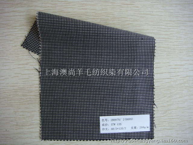 上海澳尚羊毛纺织品有限公司,始终遵循“以品质为先,诚信为本,互惠互利,合作共赢”的经营理念。我们坚持以优质的产品和合理的价格来赢得市场和客户。现有品种有数千系列,目前公司主要生产全毛及毛涤精纺面料,产品有精纺哔叽、 缎背哔叽 、单面哔叽、板丝呢、 凡立丁. 花呢、 啥味呢、 女士呢、贡丝锦等 .西装及职业装等面料,多种颜色。长期为铁路 , 航空, 城管, 保安, 邮电. 林业, 工商, 税务, 渔政, 部队, 消防, 银行, 保险, 学校 . 宾馆、等不同行业提供专业制服布料,并可根据用户要求提供定织、定染、定做.来样定制等服务。
