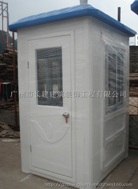 . 彩钢岗亭:岗亭支撑柱采用Φ160、1/4优质铝合金型材2. 瓦面、墙面采用双面彩钢聚苯乙烯夹芯板,不用吊天花,不用二次装修。足够强度1.窗户采用塑钢型材,配4mm透明玻璃2.底架:L4*L4角铁架中间夹板上铺盖地板胶。3.岗亭内配日光灯,工作台、电源插座,顶置旋转警灯一盏(红色4、门锁为普通球形锁。三、产品特点:1、能隔热、易清洁、美观大方,2、颜色可选:(灰白,蓝色),大小规格供挑选、定做。