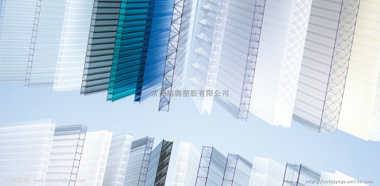 常州市瑞腾塑胶有限公司是一家生产PC阳光板、PC耐力板的专业公司,提供公司产品说明书,产品质保书等。该产品具有耐冲击,打不破.可圆拱,可弯曲..材质轻,易搬运..耐候性,采光优..超透明,超绝缘.规格齐全、质量保证.颜色种类:透明、蓝色、茶色、绿色、乳白色 (特殊颜色量大可以定做)一.产品规格: 1.阳光板: 2.1M(宽)×6M(长) (片材) 厚度:4mm6mm8mm10mm12mm14mm16mm(可定做长度) 颜色:透明\草绿\湖蓝\乳白\水晶\特殊厚度可以定做. 2.耐力板::1.22\ 1.56\ 1.82\ 2.1\最宽可做到2.18米。长度不限. 厚度1mm14mm(可定做长度)颜色:透明\草绿\湖蓝\乳白\水晶(磨砂) 二。产品特性: PC板的最大生产厂家,PC耐力板和PC阳光板.采用德国,美国及日本等国家一级的PC原料及UV-PC抗紫外线原料.运用世界领先技术精密制造而成.具有以下性能特点: 透光性:透光性能好(6mm阳光板的透光率达80%)。在阳光下曝晒不会产生黄变、雾化、透光佳等现象,并形成散射光不会形成光带,有效降低室内温度。耐候性:表面有防紫外线的共挤层,可防止太阳光紫外线引起的树脂疲劳变黄。表面共挤层具有化学键吸收紫外线并转化为可见光。对植物光合作用有良好的稳定效果。节能性:传热系数低,隔热性能好。隔音性:中空结构和聚碳酸酯树脂良好的隔音特性能有效地降低噪音,在国际上是高速公路隔音屏障的首选材料。阻燃性:据国家防火建筑材料质量监督检验中心(GB8624-97)测试属阻燃Bl级,无火滴、无毒气。耐温性:在摄氏-40oC至+120oC温度范圈内不会引起变形等品质劣化。轻便性:重量轻,阳光板的重量是同等厚度玻璃重量的1/15,便于搬运、钻孔,截断安装时,不易断裂,而且可直接冷弯,施工简便加工良好。易安装:PC板既可热弯,也可弯成拱形、半圆形及其它形状,最小弯曲半径为板厚的175