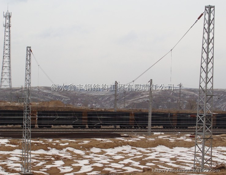 电气化铁路钢支柱用途及特点:在接触网工程中,特别是较大站场上,大量利用钢柱,它是由角钢焊接成的立体桁架结构式支柱。具有重量轻、容量大、耐碰撞、运输及安装方便等优点。现代的钢支柱都已经过热镀锌防腐处理,提高了防腐性能,延长了使用周期。钢支柱主要用于跨越股道比较多、需要支柱高度较高、容量较大的软横跨支柱,其次用作桥梁墩台上安装的支柱。现在作为软横跨的钢支柱高度由13米和15米两种。型号:G系列 高度:13-15米 防腐处理:热镀锌 材料产地:宝钢/首钢/邯钢/唐钢等。
