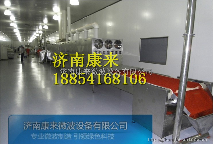 微波辣椒碎烘干设备是我公司针对辣椒制品开发的一款专用烘干灭菌设备,现有多家韩国企业和国内知名企业采用,赢得客户赞誉。其特点:高效节能、灭菌效果好、(达到出口标准)操作简单,维护费用底、安全卫生。该设备保修一年,(保修期间不收任何费用),终身免费技术服务!
