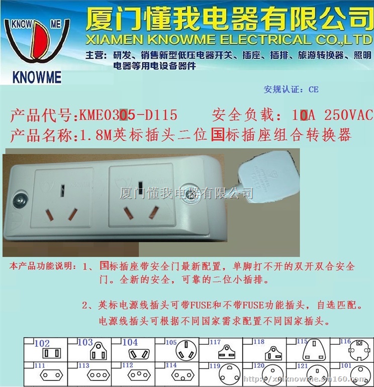 特别说明:插头电线可按用户所需配置(大南非、英标、澳标/国标、德法标、意大利标、瑞士标、巴西标等其它国家插头电线)安装在插座转换器中。