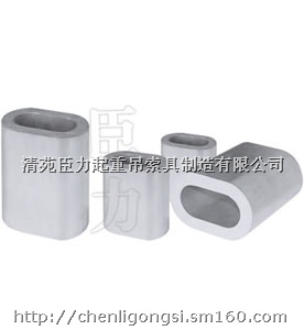 铝材质的,较轻,用来固定钢丝绳两端的头,把钢丝绳从铝套中间串过去再串回来,再用钢丝绳压套机压制,一次成型,压紧之后就不好再松开了,广泛用于各种钢丝绳索具等