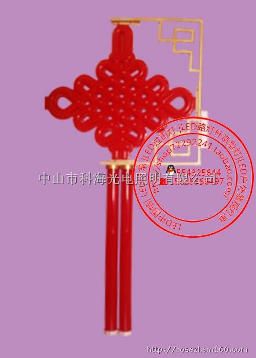 3、LED中国结灯具从结构上分立式LED中国结灯和自由挂式LED中国结灯两种,LED中国结灯灯通过特殊处理组成的LED中国结产品,适用于贵宾光临、节日喜庆时刻,添加于城市主要干道的路灯灯杆上,既不需要增加路灯设施,又可以永久使用,可为整个城市增添最具中国特色的节日喜庆气氛,使用LED中国结灯装饰道路工期短安装方便,可具永久性。直挂式型就是采用箍圈方式安装方法把LED中国结灯直接添加在路灯灯杆上的专用产品。使用这产品装饰道路免去基础及灯杆等工程。