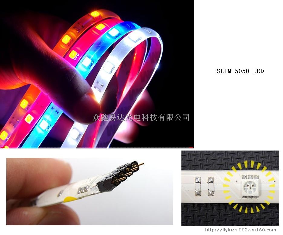LED5050软灯条是以贴片5050LED灯作为光源,以FPC电路板为载体,电路中串以适当的限流电阻而设计生产的装饰照明灯具。具有发光亮度高,柔软可弯曲,可按需要长度剪切等优点。