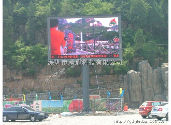 项目名称:P16户外全彩广告屏型号:GTA161 户外/户内:户外物理点距:16mm物理密度:3906点/㎡面积:48.4㎡长*宽:5.5*8.8地点:河北省狼牙山风景区时间:6月14日用途:风景区的特色宣传,特色活动的广告宣传