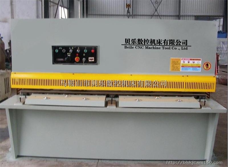 并尽量减少板材扭曲,以获得高质量的工件。剪板机的上刀片固定在刀架上,下刀片固定在工作台上。 工作台上安装有托料球,以便于板料的在上面滑动时不被划伤。 后挡料用于板料定位,位置由电机进行调节。 压料缸用于压紧板料,以防止板料在剪切时移动。 护栏是安全装置,以防止发生工伤事故。 回程一般靠氮气,速度快,冲击小。