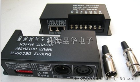 YH-845 DMX512恒压解码器,该解码器专为恒压LED灯具开发,采用先进的微电脑控制技术,把国际上广泛采用的DMX512/1990标准数码控制信号转换成PWM(脉宽调制)控制信号。可选择1~4路输出通道,每通道最大输出5A电流,并可实现256级的灰度控制级别,可用于控制单色,RGB,RGBW型的灯具。