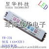 YH-336多功能LED控制器,这是一款RGB整体变色控制器。它属于恒压PWM(脉宽调制)的功率型控制器,可控制所有四线三回路(共阳极)LED全彩灯饰产品,广泛控制恒压类型的RGB灯条、LED模组、广告招牌等等。适合用于高档的KTV工程、室内灯光工程。
