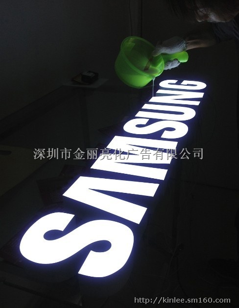 树脂字的外壳部分采用塑料(ABS)注塑成型或金属板材(铁皮、不锈钢、钛金等)焊接成型;外壳内填充原料为环氧树脂浇铸自然流平成型;发光光源采用的是超高亮度半导体发光二极管(LED)贴片模组。可以做到10公分的英文,最细笔画做到10mm。