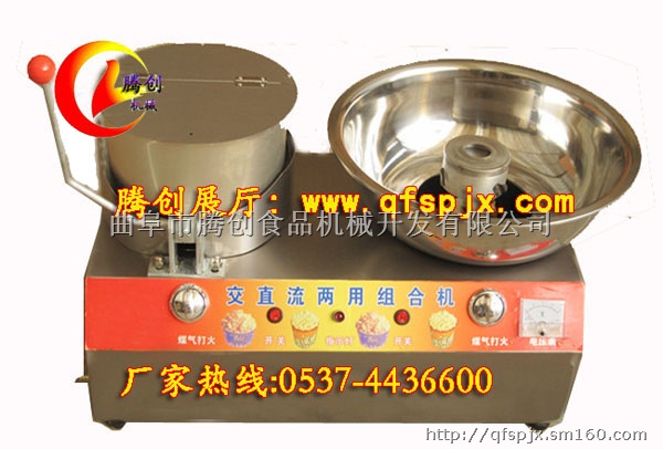 电动爆米花棉花糖组合机,棉花糖爆米花组合一体机,一边做爆米花,一边做棉花糖。做棉花糖浪费的糖可以用在做爆米花里,超级无敌完美组合。彩色果味棉花糖兼多种口味爆米花,客户想要什么来什么。同时工作只需配一块12伏电瓶,接一个煤气罐,流动作业更方便,棉花糖和爆米花两功能互不影响,放在三轮车上再人流量多的地方几天就能收回成本