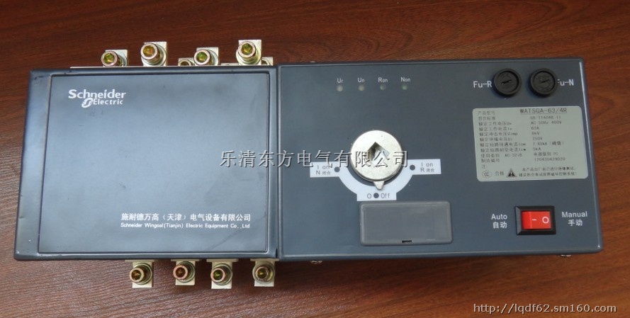 贴牌WATSNB1604CBR石家庄施耐德双电源 CB级系列智能型双电源自动转换开关是由两台三极或四极的塑壳断路器及其附件(辅助、报警触头)、机械联锁传动机构、智能控制器等组成。分为整体式分体式两种结构。整体式是控制器和执行机构同装在一个底座上;分体式是控制器装在柜体面板上,执行机构装在底座上由用户安装在柜体内,控制器与执行机构用约2m长的电缆连接。其特点是: ★两台断路器之间具有可靠的机械联锁装置和电气联锁保护,彻底杜绝了两台断路器同时合闸的可能性。 ★智能化控制器采用以单片机为控制核心,硬件简洁,功能强大,扩展方便,可靠性高; ★具有短路、过载保护功能,过压、欠压、缺相自动转换功能与智能报警功能; ★自动转换参数可在外部自由设定; ★具有操作电机智能保护功能; ★本装置带有消防控制电路,当消防控制中心给一控制信号进入智能控制器,两台断路器都进入分闸状态; ★留有计算机联联网接口,以备实现遥控、遥调、遥信、遥测等四遥功能。 二、WATSN系列产品结构与特点 WATSN系列智能型双电源自动转换开关是由两台三极或四极的微型断路器及其附件(辅助、报警触头)、机械联锁传动机构、控制器等组成。 其特点是: ★具有体积小,结构简单; 操作方便,使用寿命长,3P、4P均可提供; ★开关转换驱动采用单电机驱动、平稳、无噪音、冲击力小; ★具有机械联锁和电气联锁,转换可靠,手动、自动转换均可; ★常用、备用断路器额定电流可以不同; ★A.T.S内装有接线端子供用户接线可以反映断路器(开或闭)状态; A.T.S面板上有各种指示。 三、工作原理 当常用电源正常,功能键置于自动档时,备用断路器分、常用断路器合,以保护常用电源接通负载。当常用电源A一相或三相全部电压中断时,ATS将负载从常用电源转换到备用电源(当备用电源有正常电压时),并在常用电源恢复至正常时,又将备用电源转换至常用电源。 四、使用操作与维护 无论常用电源和备用电源有无电压,均可采用手动操作方式。手动操作时,应将手动--自动按钮置于手动位置,当推动手柄顺时针转至终端时,备用电源执行断路器Qr分闸,常用电源执行断路器Qn合闸;当推动手柄逆时针转至终端时,备用电源执行断路器Qr合闸,常用电源执行断路器Qn分闸;面板中电源指示灯指示自动控制盒工作电源,若该灯不亮,说明自动控制盒工作电源有故障,不能操作开关。待修复正常后,将手动--自动按钮置于自动位置,如果常用电源供电正常,转换开关将转到常用电源供电,面板中常用电源指示灯亮;如果常用电源供电不正常,则转换开关将转到备用电源供电,面板中备用电源指示灯亮。转换开关设有两只1A的熔断器和一只接线端子,熔断器作为自动控制器短路保护用。接线端子则为指示信号灯接至控制箱面板提供有源电源,其电压为交流220V,电流为150mA,其中具体操作可参考随机附带的说明书线路图进行连接。 五、故障分析与排除 当处于自动控制状态下供电电源发生改变时,电操机构不动作,即小型断路器不能合闸或分闸,此时应先检查: (1)电网是否都停电; (2)接线有否脱落; (3)产品本身的保险丝是否烧断。如果任一断路器前端有电,而接线又都正确,保险丝也完好,但仍不能合闸或分闸,此时应请专业人员维修或与制造厂联系解决。 款到发货,如有其它问题直接面议,以及电话咨询:欢迎各界朋友来电咨询洽谈。销售热线:0577-61732630 13587780029 QQ:2318305185