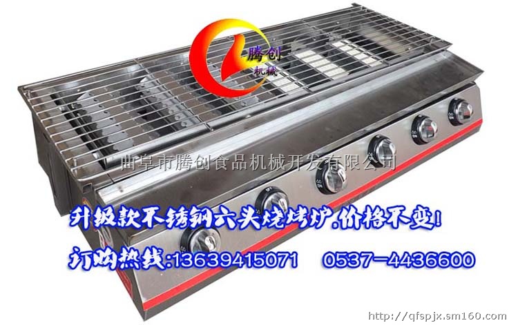 价格:2013节能环保烧烤炉,最新不锈钢六头燃气烧烤炉,是黄色喷漆外壳的升级款,质量升级,价格不变,厂家大促销一如既往特惠价格680元!