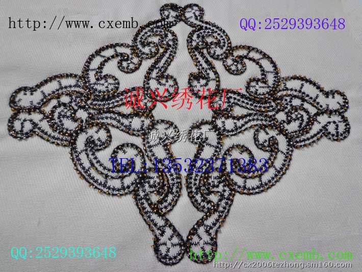 推荐珠子绣花机器订珠子推荐诚兴机绣珠子厂,诚兴机绣珠子厂家专业开发了机器订珠子。因为是机器订珠子所以保证了出货速度,质量还有珠子绣花价格。诚兴机绣珠子厂家为你们的服装提供灿烂的一笔的同时并提供了品牌保障。我们还专业从事服装、鞋帽的各种绣花相关产品,包括有珠子绣花,机器绣珠管,电脑车绳子,电脑珠片绣,机器绣铁链、珠链,电脑毛巾绣,绳股绣,丝带绣(盘带绣),立体空心绣,植绒绣,布匹花边绣,各种特种绣花,巧手订珠及款式各异的特种混合绣,机器订珠子,珠子绣花请找诚兴机绣珠子厂