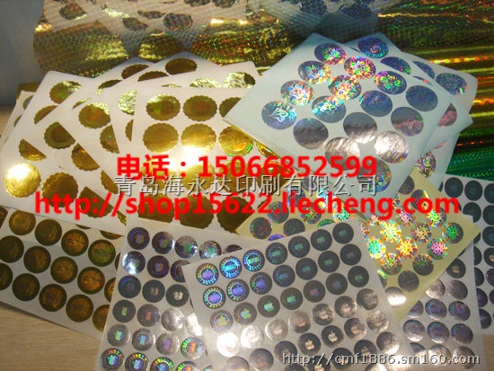 青岛海永达防伪标签有限公司:本公司成立在2003年多年来以专业生产激光标贴,防伪标签,防伪商标,激光标签,镭射标签,镭射商标,800、400电话防伪标签,(电话电码防伪、流水号打码、双层撕开留字、规律性破坏、平面及三维动态激光),数码防伪,激光防伪刮刮卡,不干胶防伪,各种图案镭射包装材料等。价格优惠,保证质量!它们广泛应用于服装、鞋类、保健品、食品、酒类、汽配、医药、轻工、电器、文化制品等各个行业。公司相关技术描述如下:激光再现,转角度烧白,水滴防伪,低频防伪,解码防伪,丝印激光结合,有温变,滴水消失,荧光防伪等等,我们将以优良的服务、低廉的价格令你高兴而来,满意而归、有意者来电联系