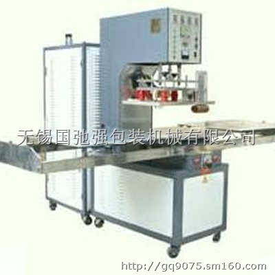 设备原理:主要利用高压镇流刺激高频电子管振荡瞬间产生高频电磁波电场,被加工的PVC、TPU、EVA等塑胶材料在电磁波电场内发生分子极性化变化,加上一定的压力就可以达到熔接的目的。