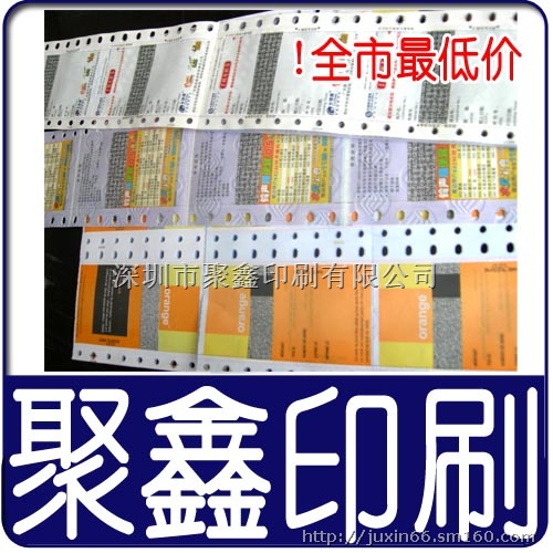 电脑单据是每个商店公司和机构都会用的一种单据,根据每种产品的不同要求有不同的设计尺寸和设计内容,因此也会有多种多样的电脑单据票据在市面上销售,而我们公司-深圳聚鑫印刷是一家专业做电脑单据票据印刷的印刷厂家,不仅拥有多台先进的机器设备,而且具有经过专业指导的经验老道的调机调色师傅,交货期短,品质有保证,还有非常重要的一点就是,我们是直接厂家,按出厂价报价,价格低到您绝对想不到,绝对物美价廉!还免费送货(深圳地区),货到付款,若有任何质量问题,包退换,购买我们的产品您绝对省心省钱,与我们合作您绝对放心!!