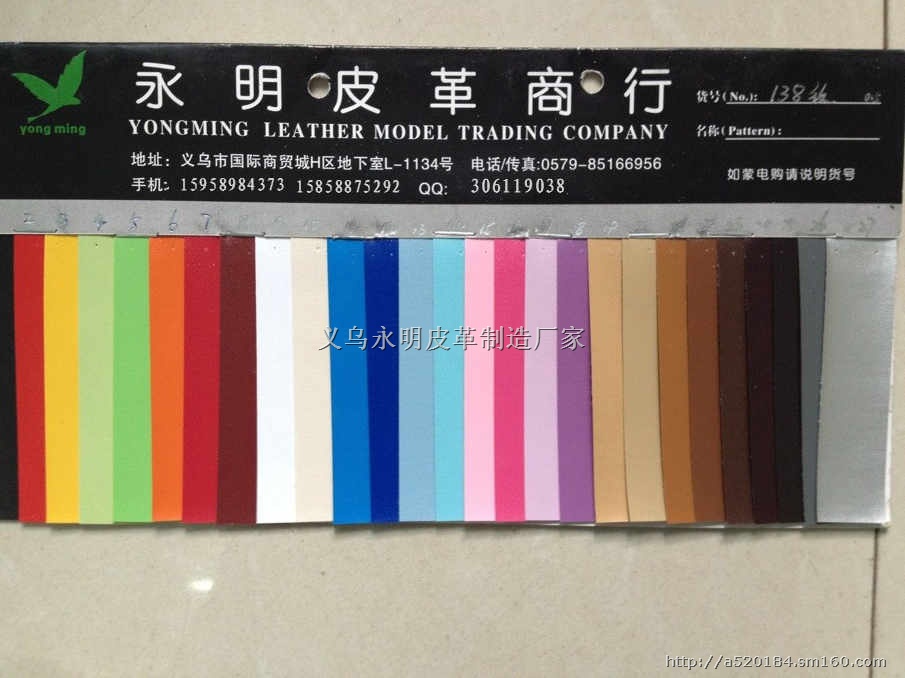 义乌永明皮革专业供应:pu人造革,pvc人造革,箱包革,镜面革,软包装饰革,装饰皮革,汽车革,腰带革等各种高中档人造革,来样定做.