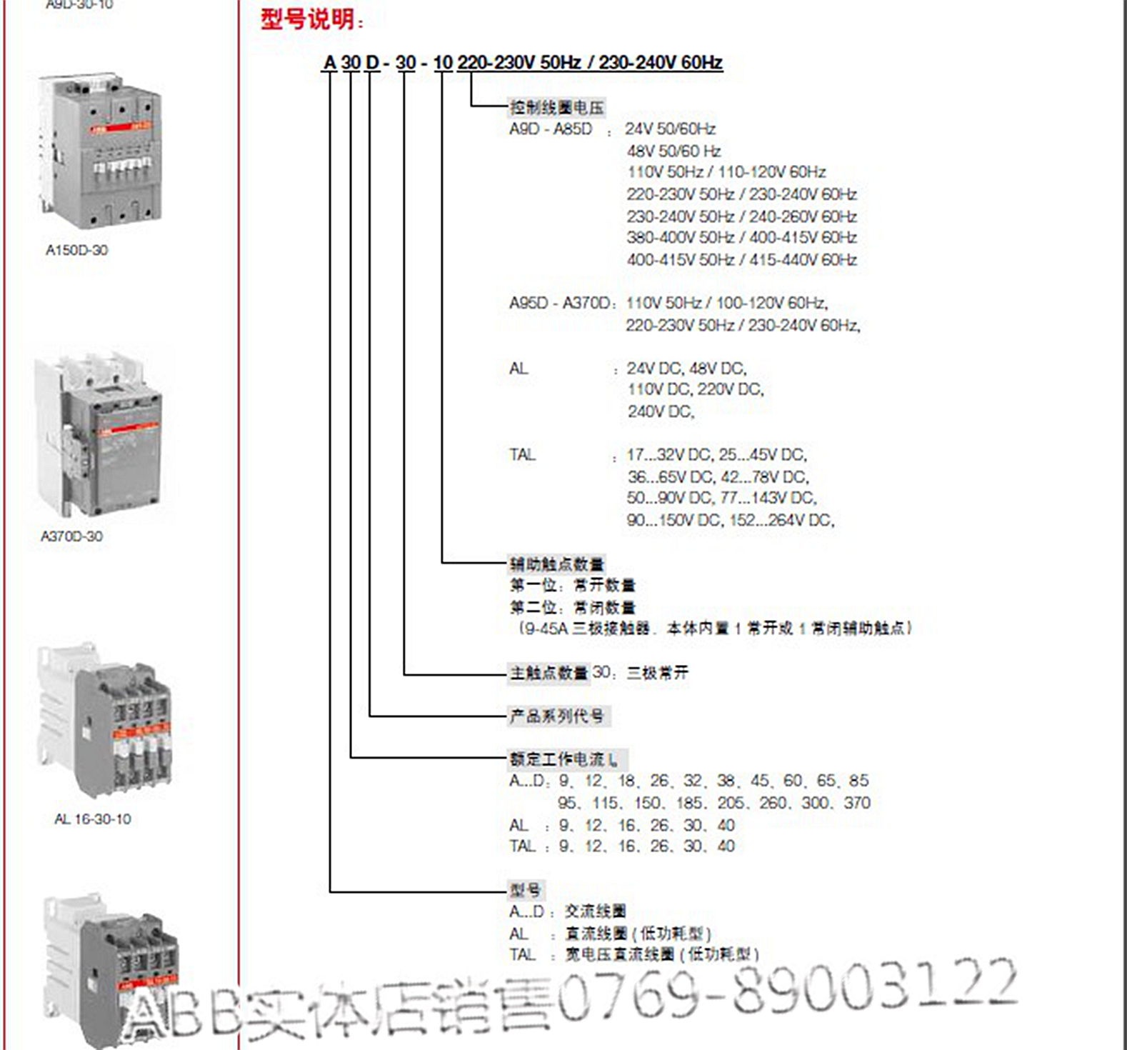 A50D-30-11220V交流接触器ABB现货