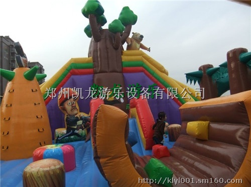 大型充气城堡蹦床滑梯游乐园属新一代的娱乐设施,根据儿童的特性设计,它内含pvc儿童充气大滑梯、各式各样的动物造型,有丰富的娱乐项目,深受孩子们的喜爱。它具有安全性、综合性、可观赏性、新颖性,色彩鲜明,经久耐用通过科学的立体组合,采用超强的防水布制作而成,这是一种综合性极强的娱乐乐园。游戏者通过翻、滚、爬、摇、晃、跳、钻等新奇的活动方式,达到开发智力,锻炼身体,愉悦身心的目的。本产品因其随意性和无动力装置受到买家的欢迎,安全可靠,管理简单,维修方便。